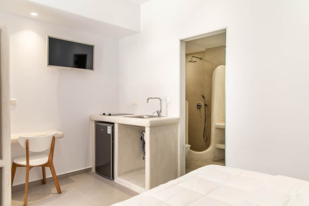 The accommodation is located just 200 meters from the main square of the city, 350 meters from the beach of Agios Georgios and 800 meters from the port of Naxos. Within walking distance you will found restaurants, cafeterias and bars, rent a car & motorbike rental offices and supermarkets.
